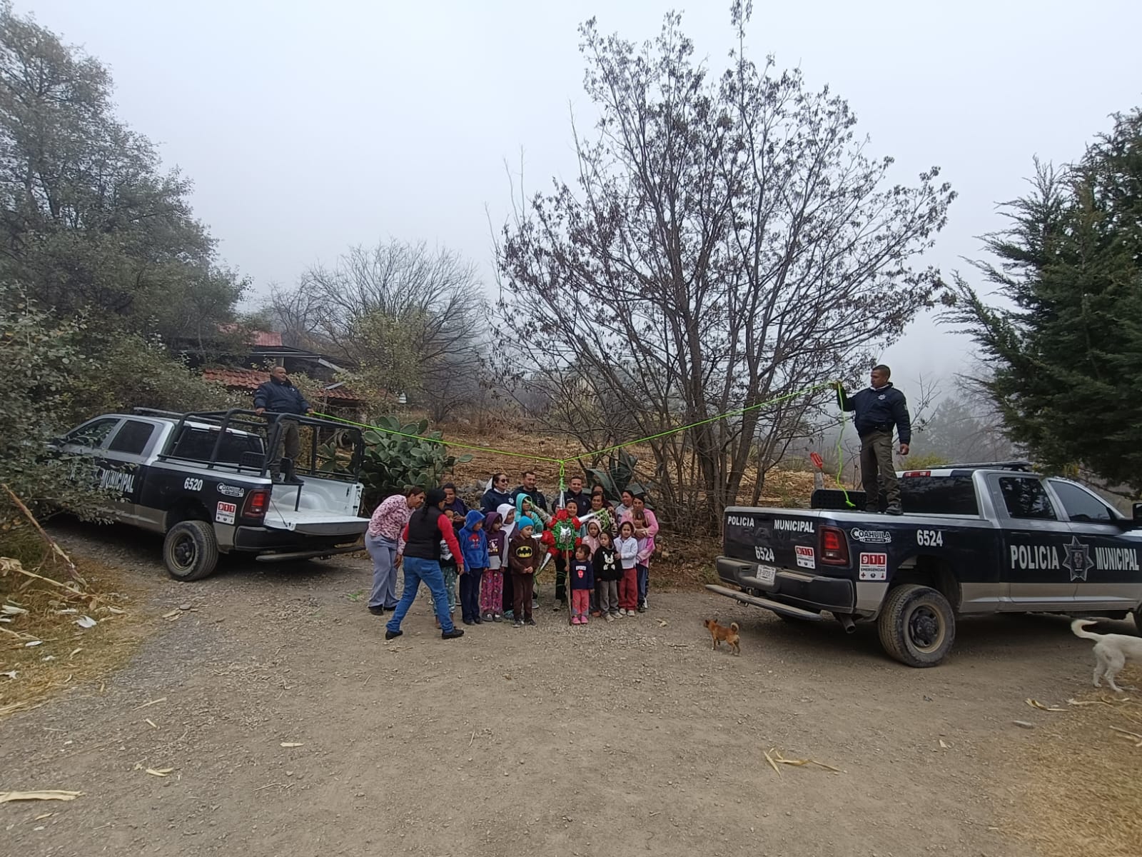 Como parte de estas acciones, algunos elementos realizaron recorridos por comunidades, donde llevaron bolos, pastel y piñatas para las niñas y niños, reforzando el acompañamiento social en esta temporada.