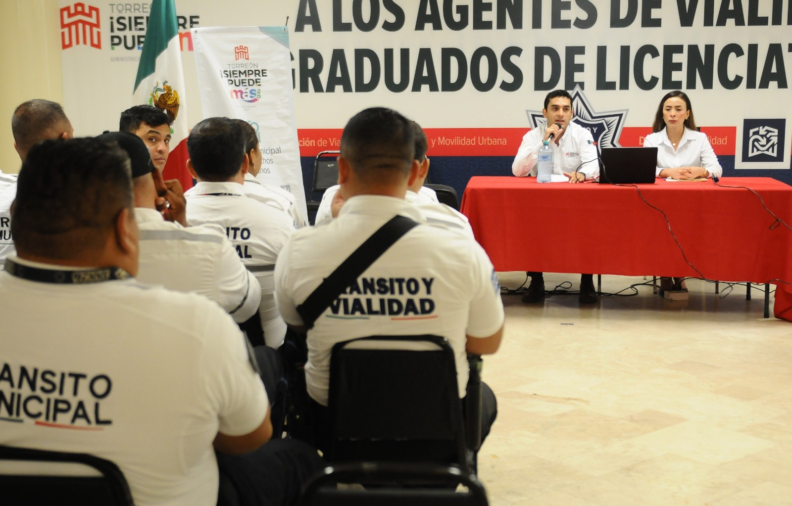 Torreón, Coah.- Con el propósito de fortalecer la formación y desempeño de los servidores públicos que mantienen contacto directo con la ciudadanía, la Unidad Municipal de Derechos Humanos (UMDH) llevó a cabo una capacitación dirigida a 221 agentes de Tránsito y Vialidad del Municipio de Torreón.