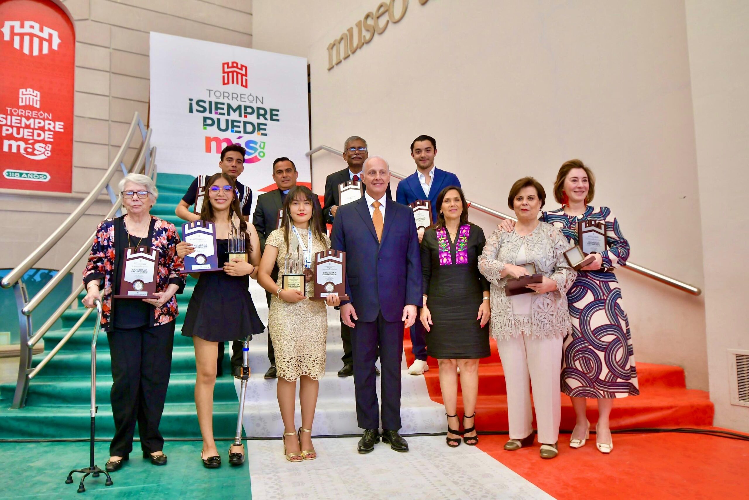“Detrás de cada logro, obra y avance, están las mujeres y hombres que con su esfuerzo diario hacen posible el crecimiento de esta ciudad que justo hoy cumple 118 años. Estas preseas adquieren un significado especial, son un reconocimiento simbólico por su ejemplo que nos inspira a no conformarnos, a dar siempre más, a crear y a creer que Torreón siempre puede más”, dijo Cepeda González.
