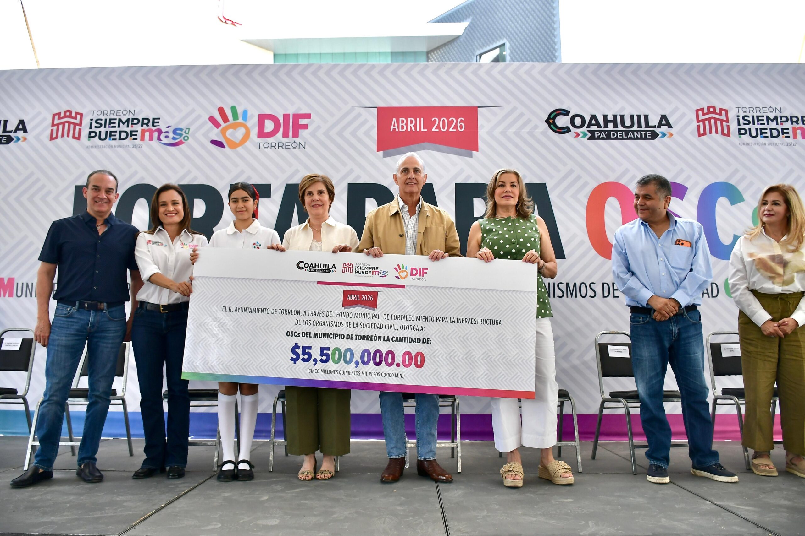 Torreón, Coahuila.- El alcalde Román Alberto Cepeda González encabezó la entrega de 5.5 millones de pesos correspondientes al Fondo Municipal de Fortalecimiento para la Infraestructura de los Organismos de la Sociedad Civil de Asistencia Social (Forta) 2026, destinados a 38 instituciones que participaron en la convocatoria del DIF Torreón.