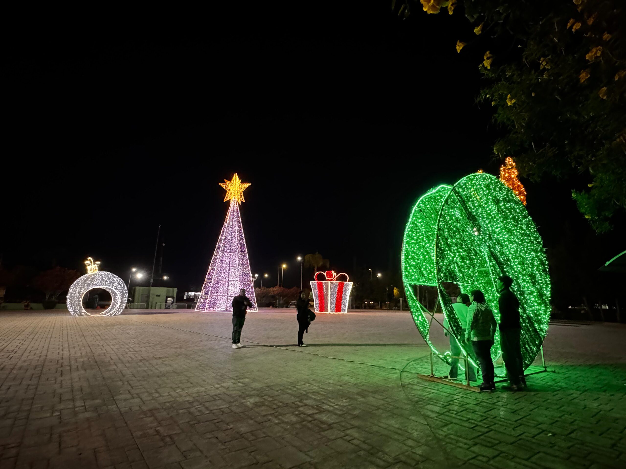 En el área principal del parque se colocaron un árbol luminoso, un regalo gigante y dos esferas de gran tamaño, con la finalidad de ofrecer un entorno visualmente atractivo que incentive la convivencia social y el disfrute de las familias que acuden al lugar, especialmente durante el periodo vacacional.
