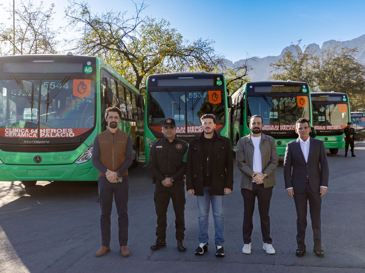San Pedro Garza García, Nuevo León.— Como parte del proceso de modernización del transporte público, el Gobierno del Estado entregó 45 autobuses nuevos a la Ruta 98 Héroes de Capellanía–Palacio de Hierro, que conecta los municipios de García, Santa Catarina y San Pedro.